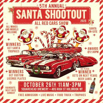 Squarehead Brewery in Holbrook NY had a Santa Shootout All Red car show on Sunday October 26, 2025.