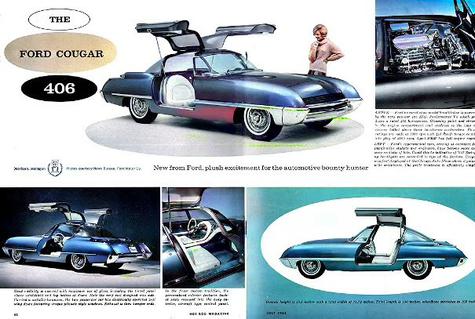 The 1962 Ford Cougar 406 was a Concept Car designed by custom car builder Dean Jeffries in collaboration with Ford Motors to push the boundaries of automotive design. In my opinion it was a fine automobile years ahead of its time.