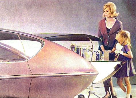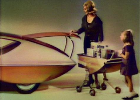 I found this 1964 GM Runabout 3-wheel drive shopping car very interesting. It was advertised for the modern housewife to help her with the shopping while watching her little "tykes".