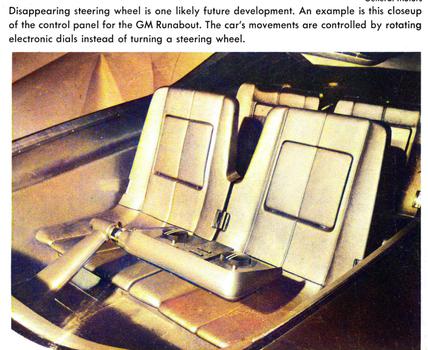 6 The GM Runabout had space for 2 adults in the front and 3 children in the back seat. No steering wheel was the concept for the future.
