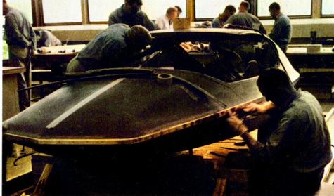 7 The rear end of the car contained two detachable shopping trolleys with wheels that would fold away when the trolley was parked in the vehicle. Here the engineers are building the concept car.