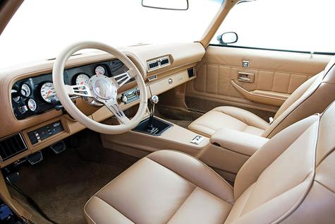 23 1975 Chevrolet Camaro. Interiors were revised slightly with new seat trim patterns and bird's-eye maple trim replacing the Meridian grained walnut on the instrument panel of LT models.