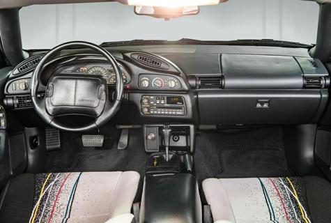 14 1993 Camaro Z28. This one was equipped with a 275-horsepower 5.7-liter 350 CI V8 connected to a four-speed automatic transmission. The Z28 Camaro holds the distinction of having one of the more distinctive paint schemes of the Camaro pace cars. Each one was offered in a black and white two-tone color, with pink, teal, yellow, and red striping along the sides of the car. The multi-hue color scheme was also featured on the front seats with a similar striping and “confetti” patterns.