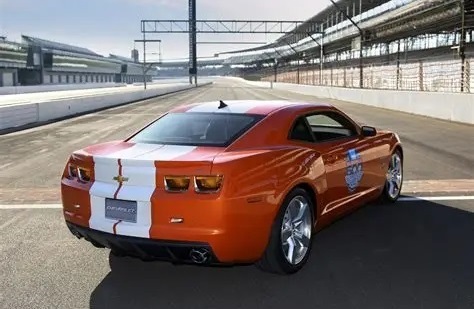 22 2010 Camaro ZL550. For the first time since 1993, Chevrolet offered a special run of pace car replicas to the public. Each of the 294 replicas contained the same “inferno orange metallic with diamond rally stripes” exterior color found on the official pace cars. Other special touches on both replicas and the official pace cars were the Indianapolis 500 graphics both appearing on the doors as well as embroidered on the seat headrests. A special “heritage grill” was standard on all 2010 Camaro Pace Cars, and unlike previous years, a special integrated light bar was installed in the back window instead of the top of the roof.